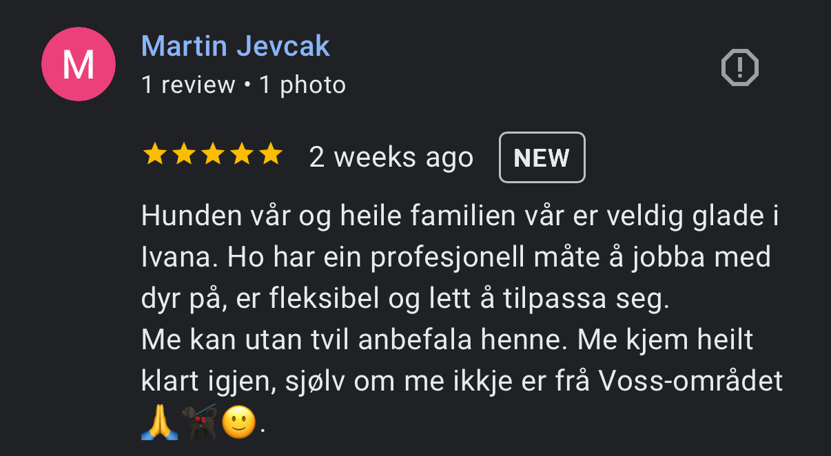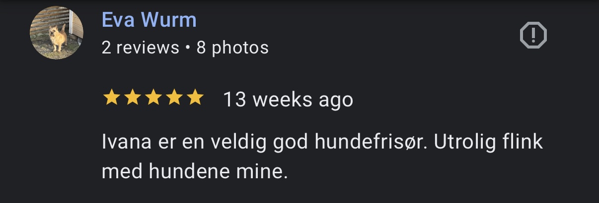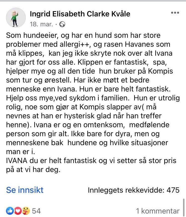 Hele livet har jeg vært omgitt av dyr, og derfor valgte jeg å kombinere kjærligheten til dem med arbeid. I Oslo deltok jeg på kurs i hundeklipp og jobbet deretter i en hundesalong. Jeg har også erfaring fra en salong i Bergen, hvor jeg i tillegg jobbet i hundebarnehage. I 2022 åpnet jeg min egen salong i Voss, hvor jeg legger stor vekt på en tålmodig, trygg og kjærlig tilnærming til hver hund.